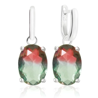 Owalne kolczyki z turmalinem arbuzowym - srebro 925