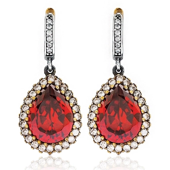 Delikatne kolczyki Sułtanki Hurrrem z rubinem - srebro 925