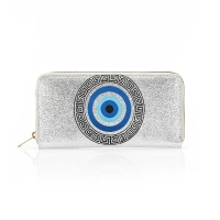 Damski portfel srebrny, Oko proroka, wiele przegródek