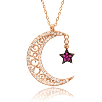 Pozłacany srebrny naszyjnik z półksiężycem - srebro próba 925