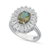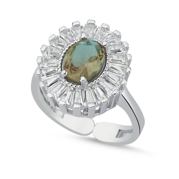 Okrągły srebrny pierścionek z podłużnymi cyrkoniami