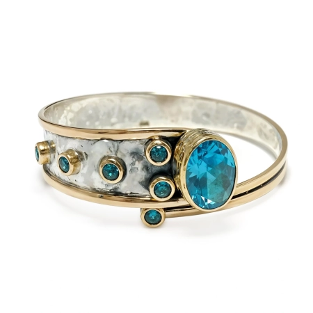 Bransoletka srebrna z owalnym błękitnym topazem - Wyprawa przez orient