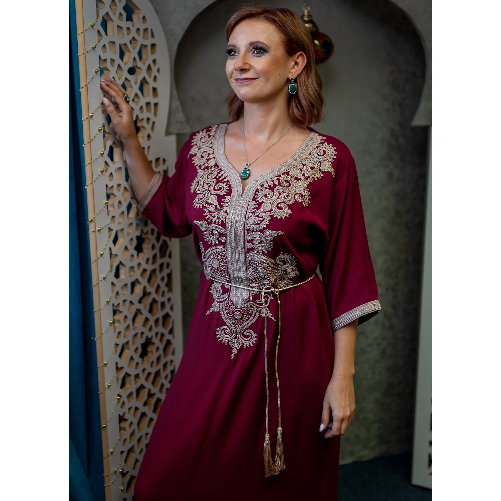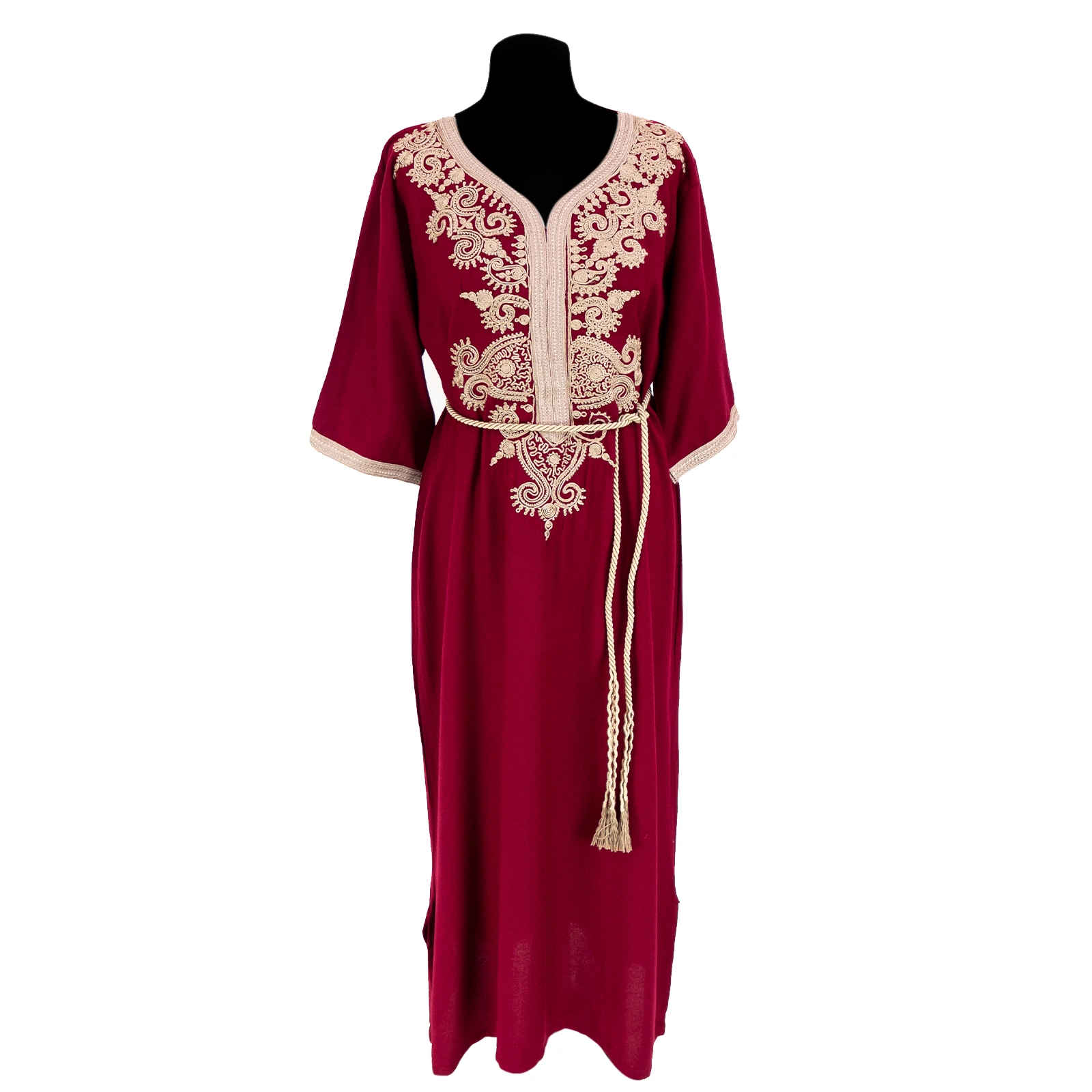 Pełna energii i wyrazista arabska suknia galabija w intensywnym czerwonym odcieniu, inspirowana spektakularnymi czerwonymi skałami otaczającymi malowniczą miejscowość Tafraoute. Wykonana ze 100% bawełny, suknia gwarantuje doskonały komfort i przewiewność, idealna na upalne dni. Bogato zdobiona ręcznie haftowanymi orientalnymi wzorami, które dodają jej wyjątkowego charakteru i przywodzą na myśl surowe piękno marokańskich krajobrazów. W zestawie znajduje się pas podkreślający talię, który zapewnia eleganckie dopasowanie do sylwetki. Galabija „Czerwone Skały Tafraoute” to wyjątkowy strój, który oddaje siłę i piękno marokańskiej natury, przenosząc Cię w świat dzikich górskich formacji i pustynnych barw.