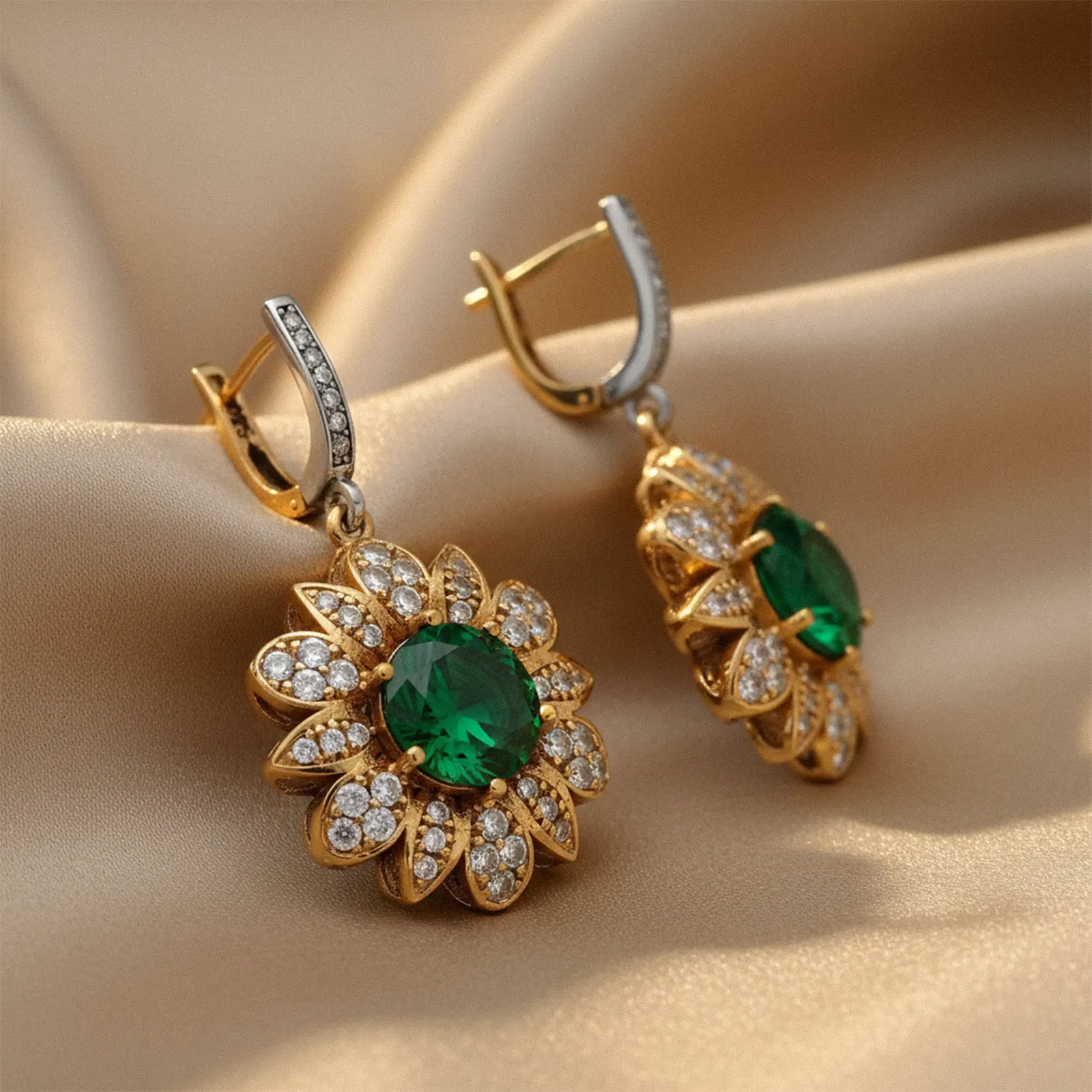 Kolczyki srebrne ze szmaragdami to biżuteria, która łączy masywną, kwiatową formę z orientalnym wzornictwem i głębokim kolorem. Wykonane z połączenia srebra 925 i brązu, wyróżniają się elegancją i mocnym wyrazem.