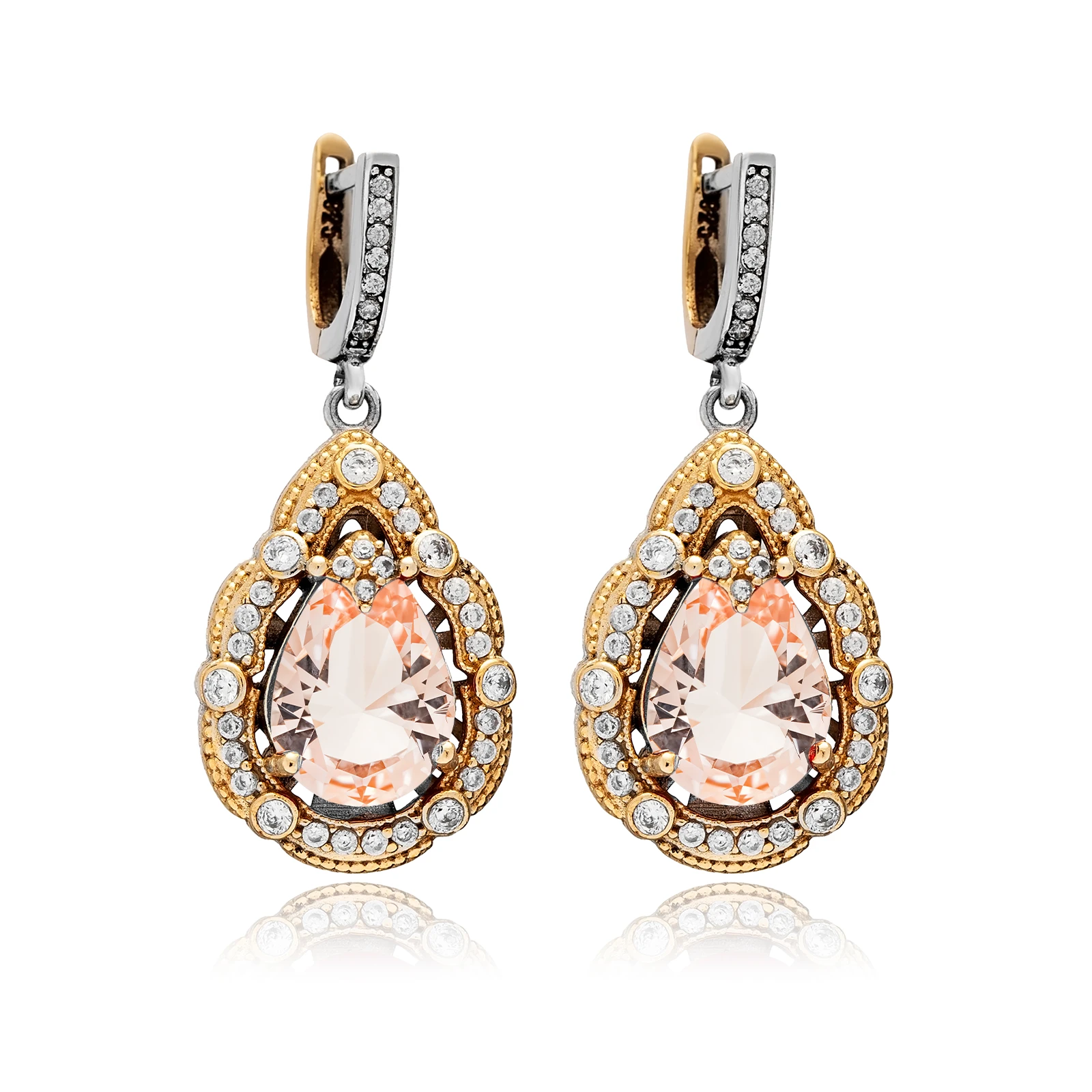Kolczyki srebrne z morganitem i cyrkoniami