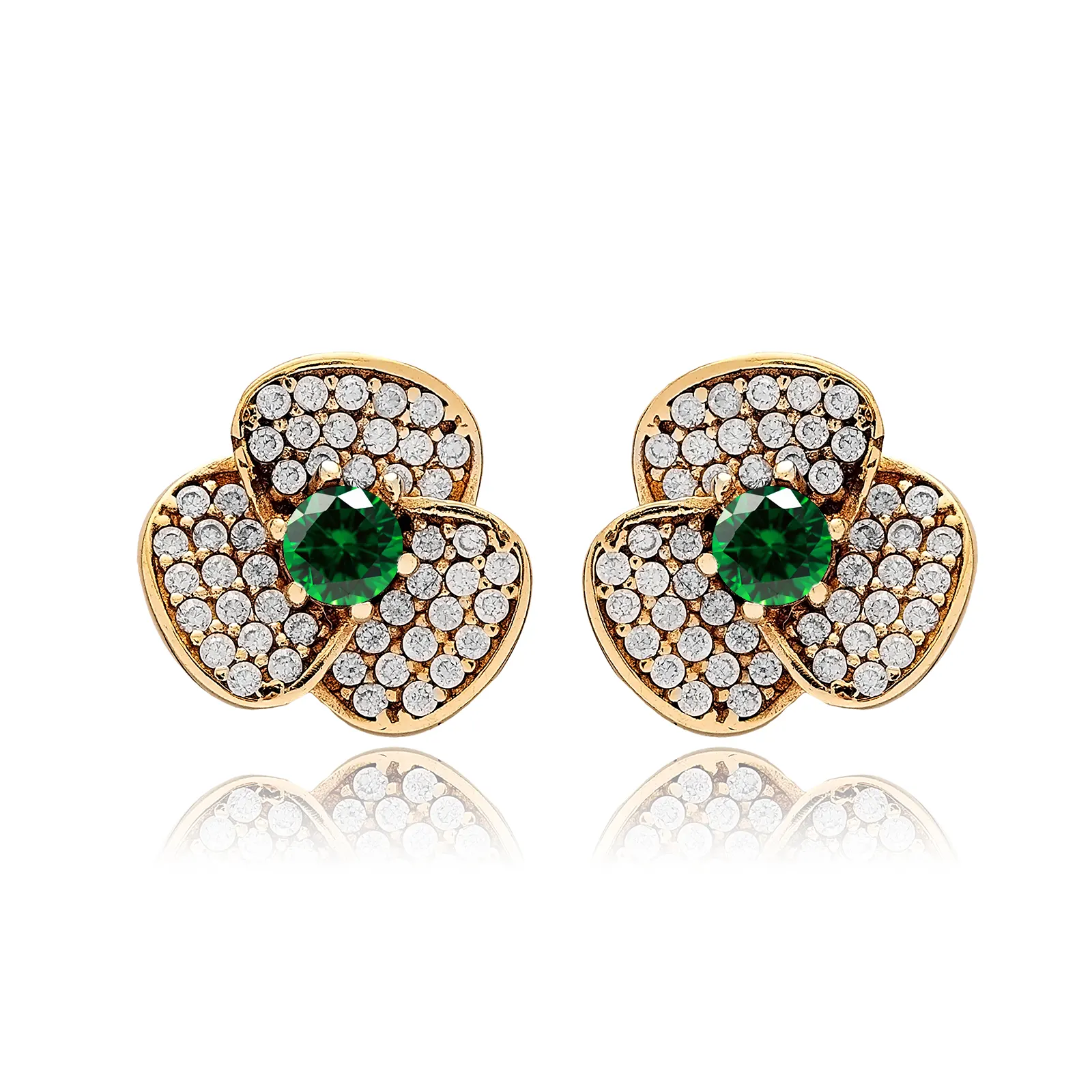 Każdy kolczyk ma formę kwiatu o trzech płatkach, w którego centrum znajduje się szmaragd - kamień symbolizujący harmonię, równowagę i odrodzenie. Otaczające go drobne, przezroczyste cyrkonie pięknie odbijają światło, nadając kolczykom elegancki blask.