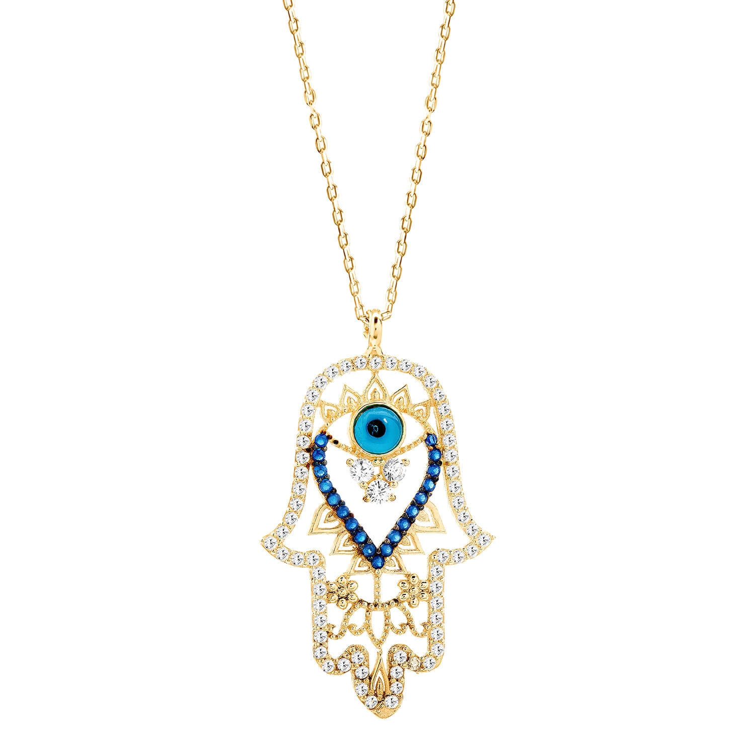 Naszyjnik hamsa - pozłacane srebro - to propozycja dla kobiet, które uwielbiają delikatność, jakość oraz blask. Forma wykonania tego orientalnego naszyjnika cechuje się niezwykłą precyzją, a także lekkością i delikatnością, więc świadczy to o najwyższej jakości wykonania tej orientalnej biżuterii. Kolorowy naszyjnik hamsa - pozłacane srebrno został zaprojektowany w szczególności z myślą o kobietach, które cenią wygodę, delikatność i elegancję. W związku z tym idealnie będzie się prezentował na każdej kobiecie oraz dopełni każdą kobiecą kreację. Dodatek małych cyrkonii nadaje również niesamowitego blasku imponującej biżuterii. Dzięki temu naszyjnik jest naprawdę wyjątkowy i warty uwagi!