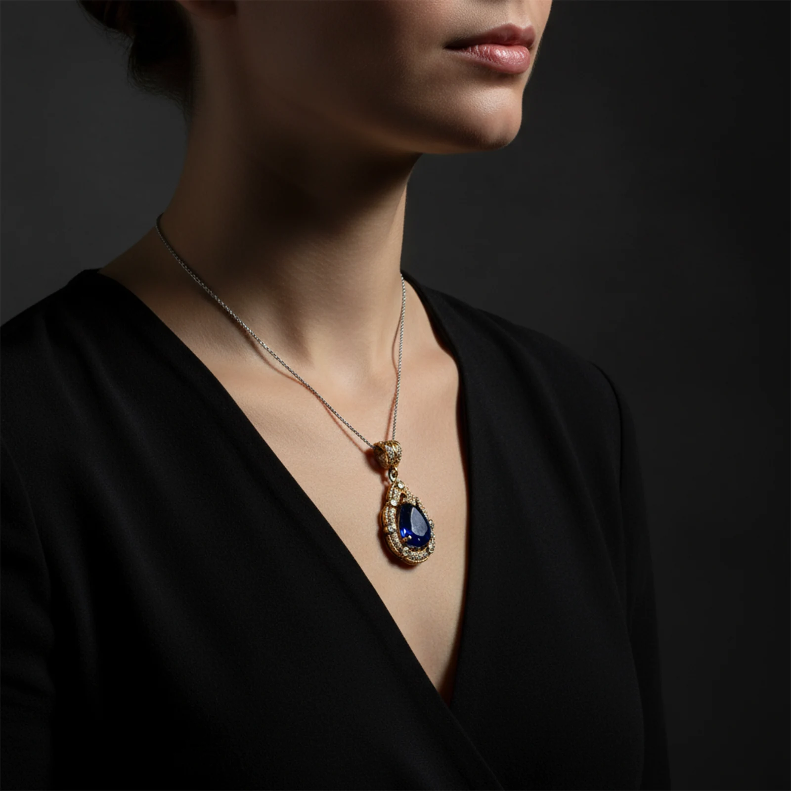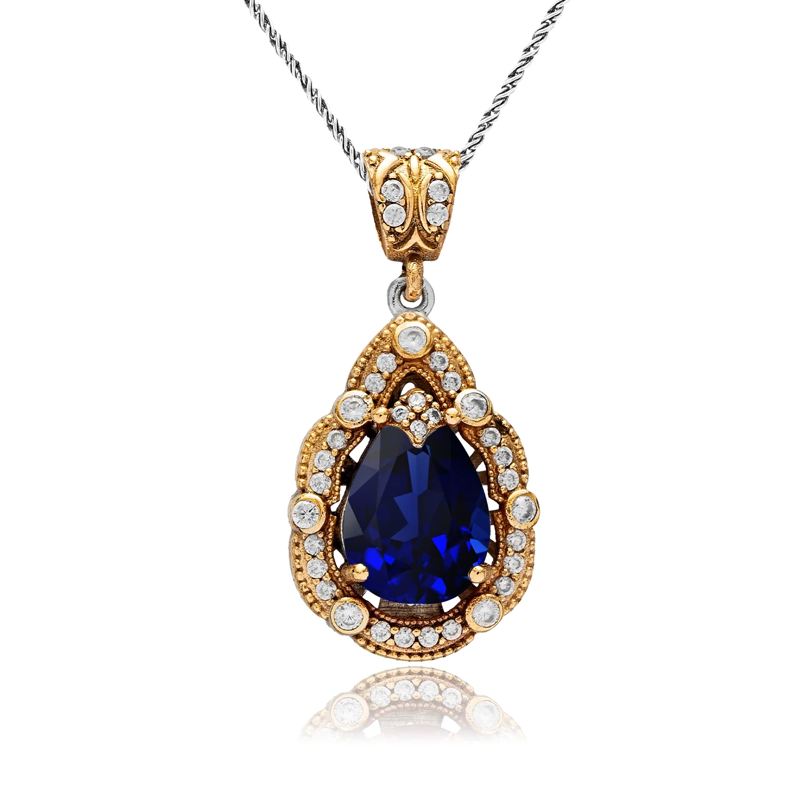 Naszyjnik srebrny z szafirem to biżuteria, która zachwyca głębią koloru i kunsztem wykonania. Stworzony z połączenia srebra próby 925 i brązu, emanuje orientalnym wdziękiem i elegancją.