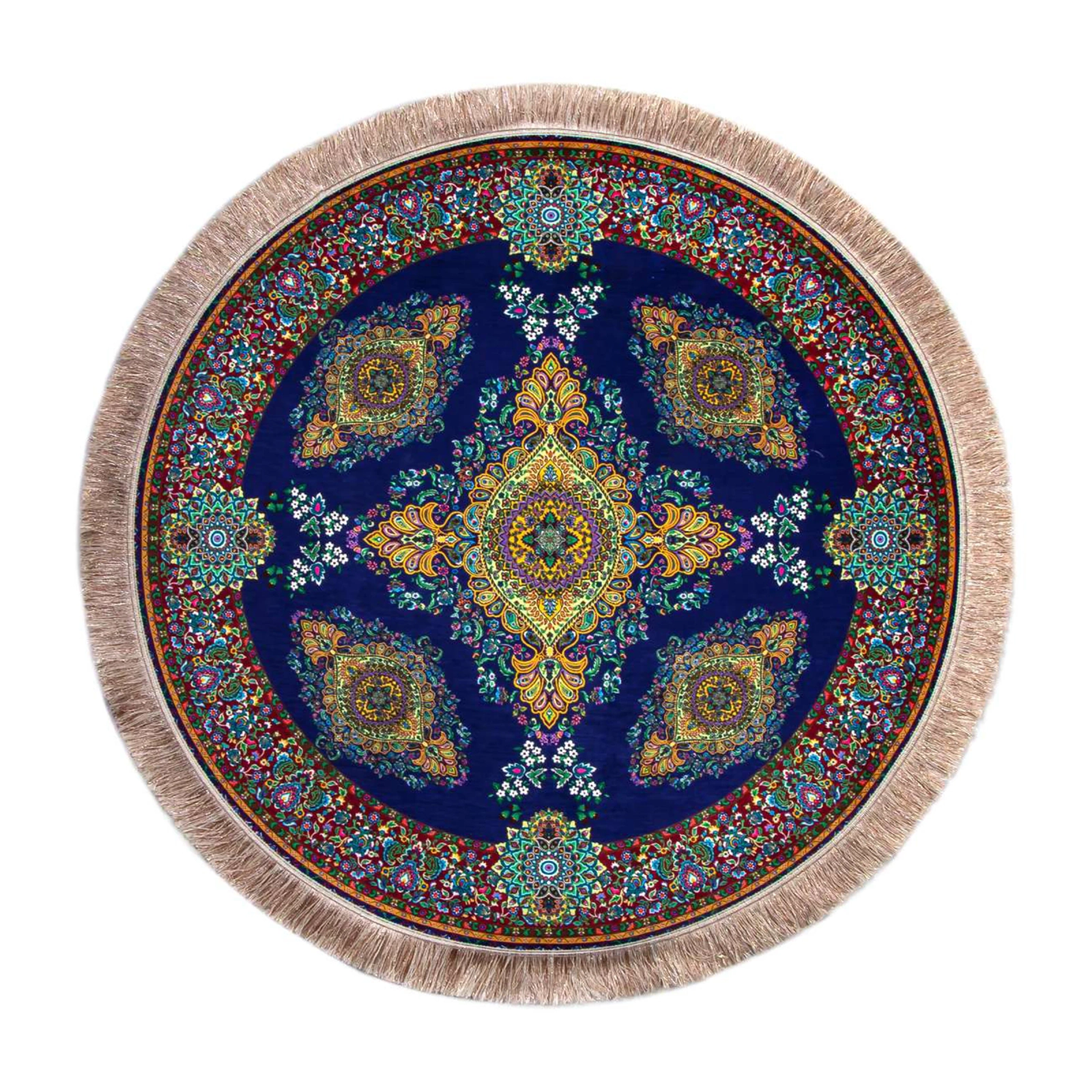 Okrągły dywan orientalny granatowy 90 x 90 cm z bawełny