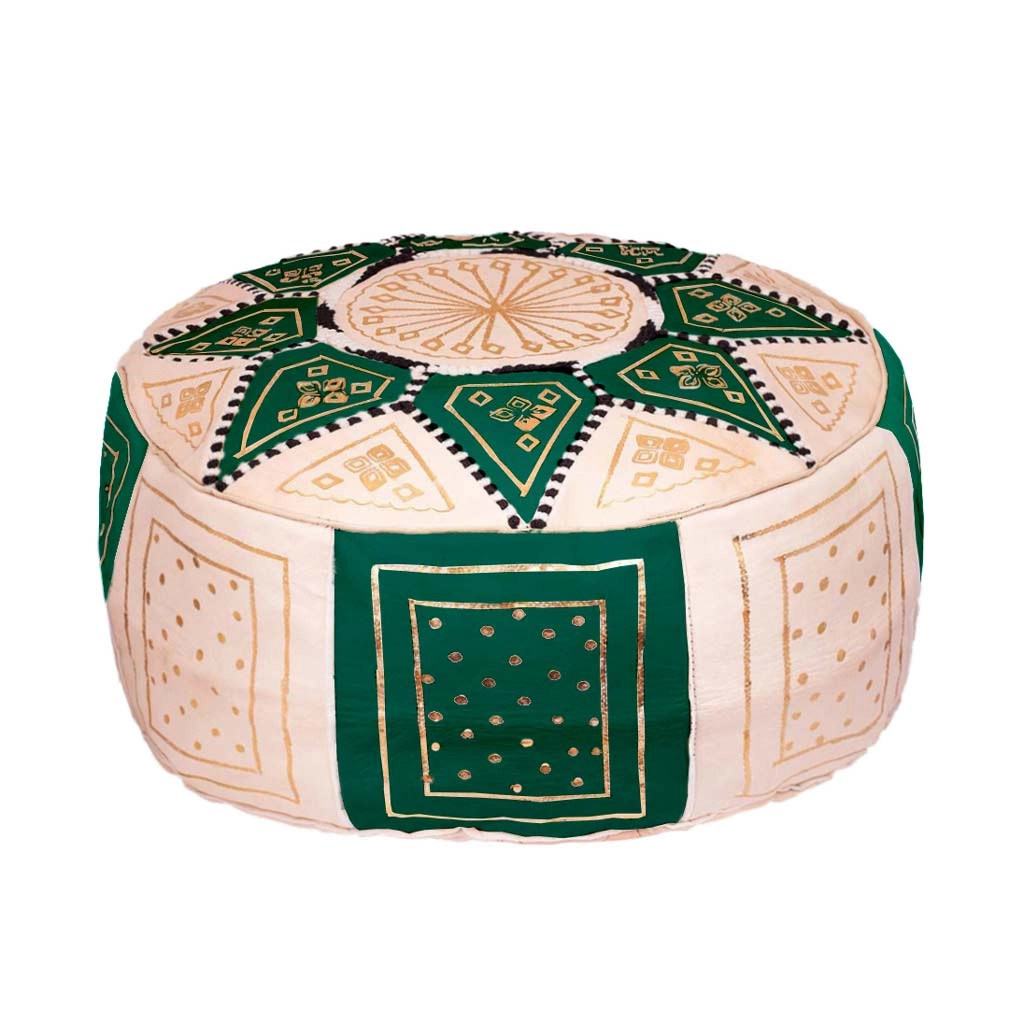 Po osuszeniu materiałów, rzemieślnik ręcznie zszywa ze sobą kawałki skóry, wyszywa lub wytłacza orientalne elementy. Ręcznie wykonana orientalna pufa daje gwarancję trwałości i niepowtarzalności. Różnorodność kolorów pozwoli dopasować skórzaną pufę orientalna do każdego wnętrza. Zapraszając gości nie zaskoczy Cię brak miejsca do siedzenia, gdyż marokańska pufa jest doskonałą alternatywą dla dużych krzeseł czy sof.