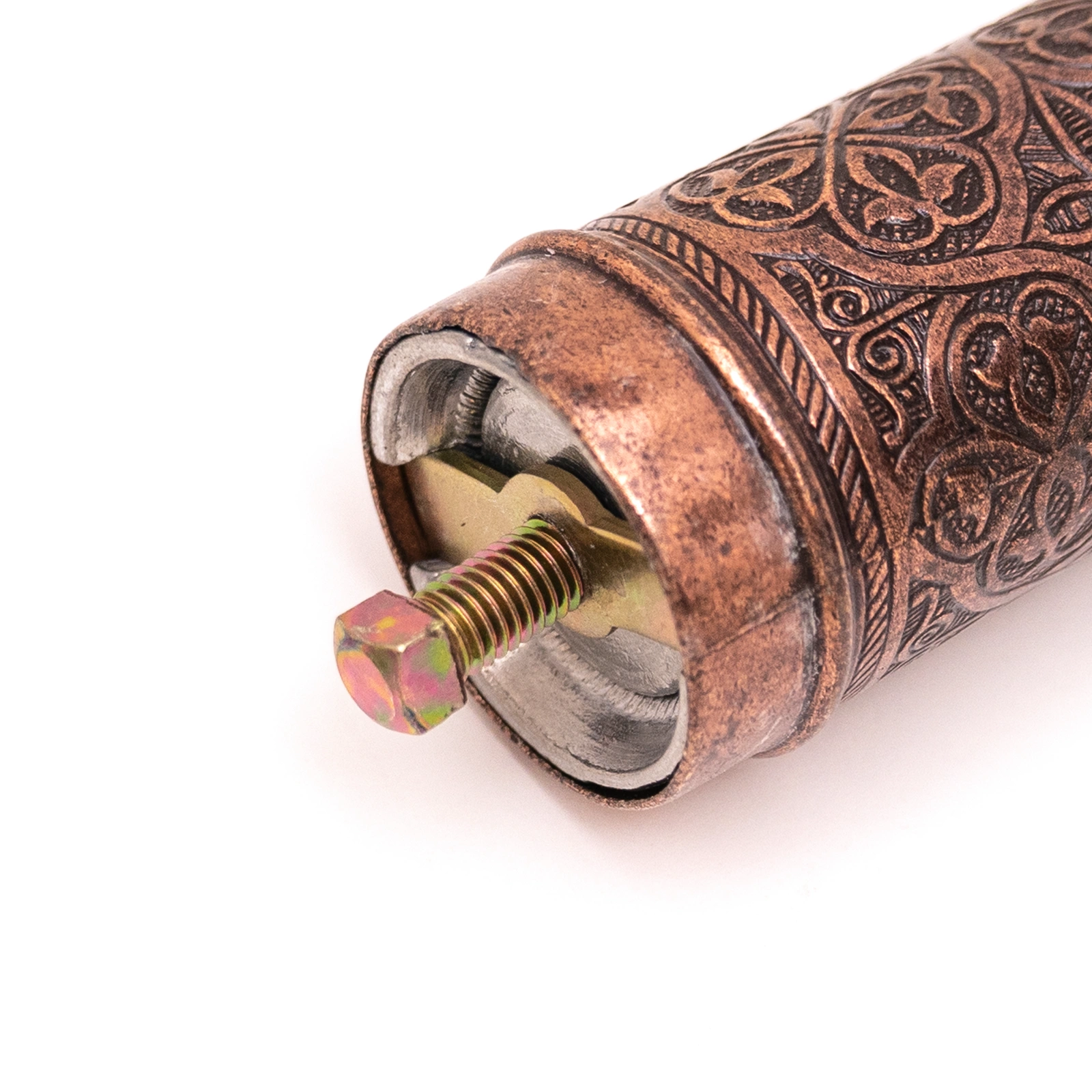 Młynek do kawy w kolorze miedzianym to propozycja dla osób, które chcą otaczać się orientem i czuć codziennie ten niesamowity egzotyczny klimat. Już nawet widok orientalnego młynka w jednej chwili przeniesie Cię do świata orientu i otuli ciepłem słońca. Dzięki temu wyjątkowemu młynkowi Twoja kuchnia nabierze orientalnego charakteru - nie tylko w postaci potraw, ale i akcesoriów! Prezentowany młynek może służyć również nie tylko jako młynek do przypraw w kuchni, ale również jako dekoracja. Będzie też idealnym prezentem dla osoby pasjonującej się orientem. Nie czekaj więc dłużej - nadaj życiu orientalnego charakteru, dzięki rozmaitościom z Ottomanii!
