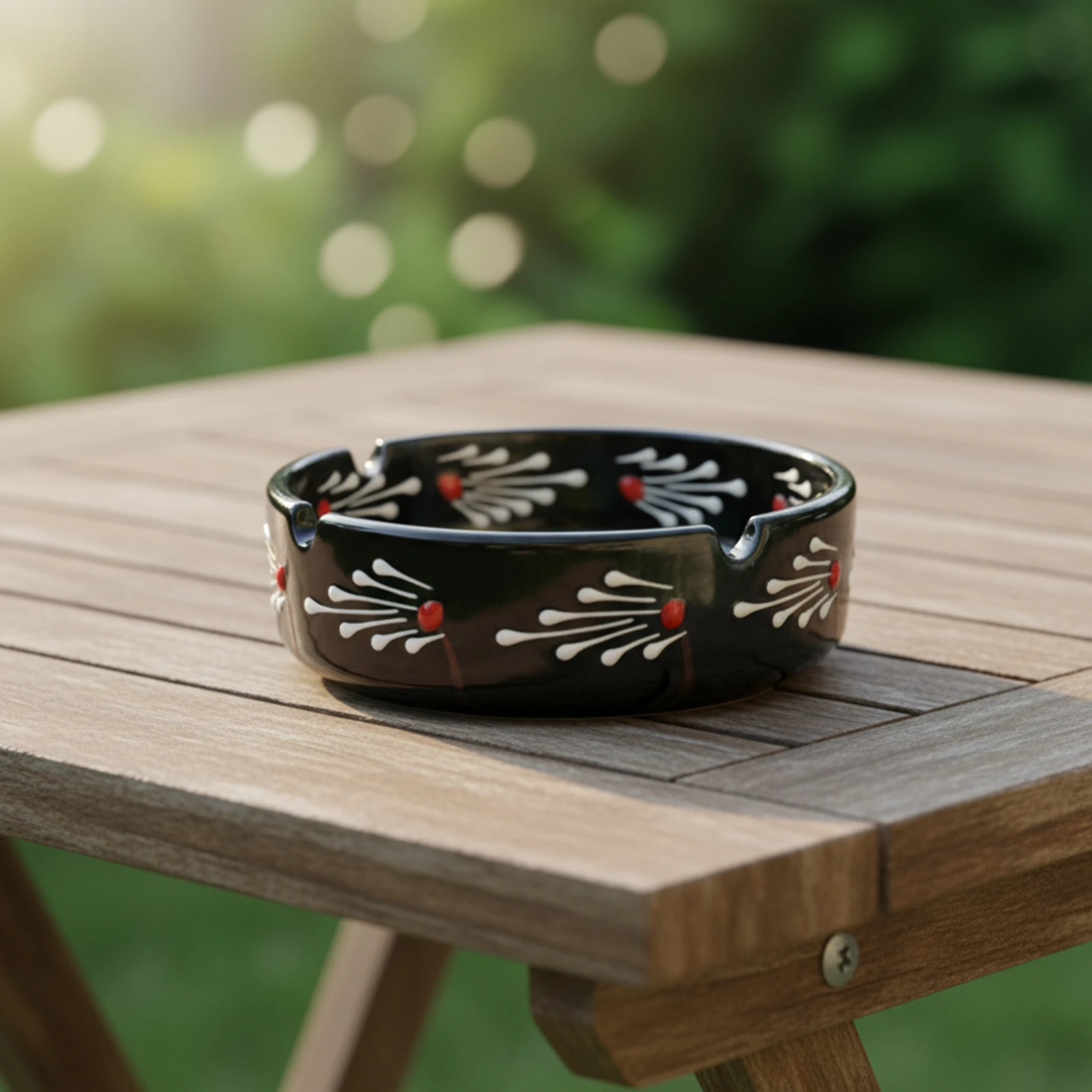 Popielniczka ceramiczna czarna to elegancki i praktyczny element codziennego użytku, który wyróżnia się orientalnym charakterem. Ręcznie malowana w barwne kwiatowe motywy, na tle głębokiej czerni prezentuje się niezwykle stylowo. To dodatek, który łączy funkcjonalność z artystycznym pięknem, idealny zarówno do domu, jak i do ogrodu czy na taras. Solidne wykonanie z ceramiki sprawia, że popielniczka jest odporna na wysoką temperaturę, a jej stabilna forma gwarantuje wygodne użytkowanie.