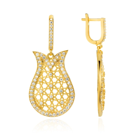 Pozłacane kolczyki ze srebra 925 w kształcie tulipana, ażurowe - Złoto Haremu