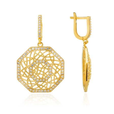 Pozłacane ośmiokątne kolczyki ze srebra 925, ażurowe - Złoto Haremu