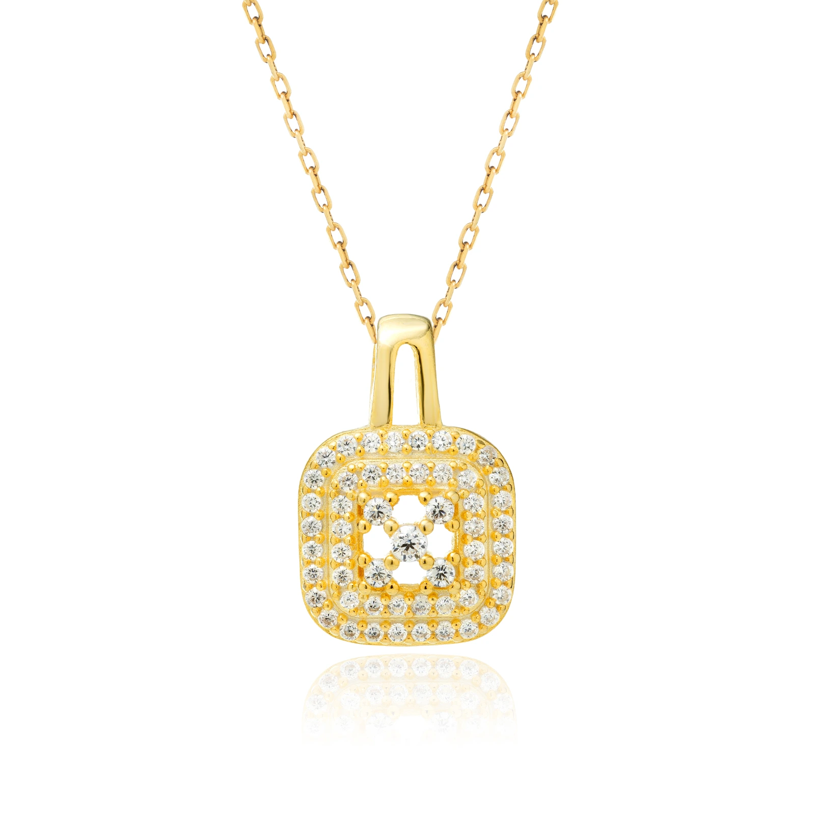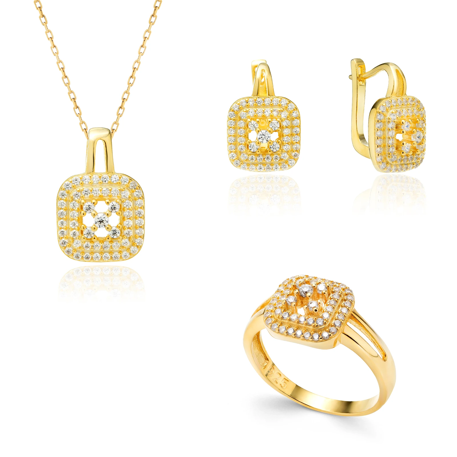 Pozłacany komplet biżuterii ze srebra 925, kwadratowy, delikatny - Złoto Haremu