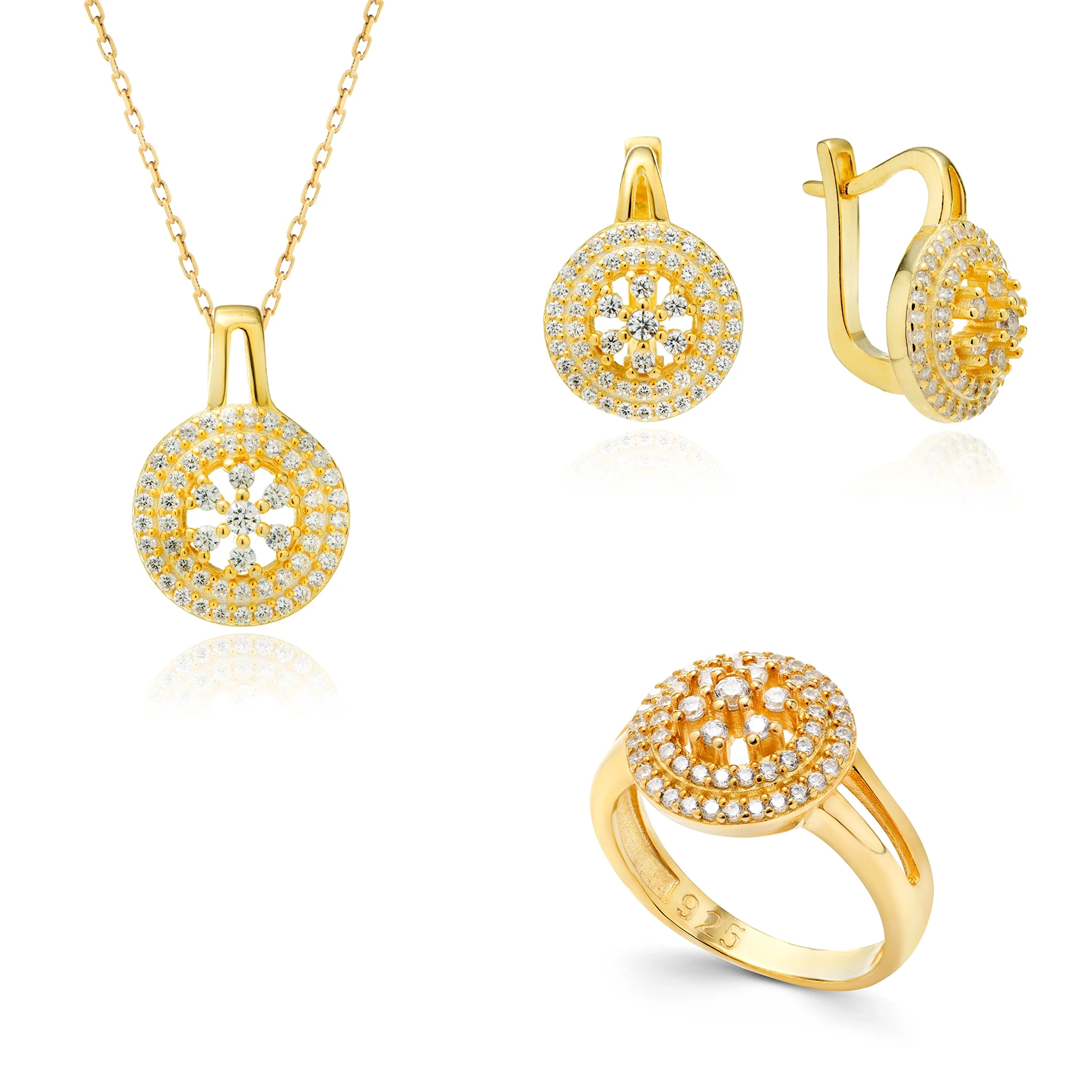 Pozłacany komplet biżuterii ze srebra 925, okrągły, delikatny - Złoto Haremu
