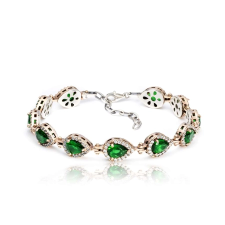 Srebrna bransoletka dla kobiet ze szmaragdami to wyjątkowa biżuteria. W bransoletce osadzono szmaragdy o szlifie gruszki. Wyjątkowa barwa kamieni, pasuje praktycznie do wszystkiego dlatego świetnie dopełni Twój codzienny strój oraz ten wieczorowy. Ta wyjątkowa biżuteria srebrna sprawi, że nikt nie przejdzie obok niej obojętnie, a jej wyraziste, głębokie barwy na pewno zapadną w pamięć każdemu. Ty natomiast będziesz mogła cieszyć się bransoletką zdecydowanie przez długie lata gdyż jest ona wykonana z najwyższej jakości materiałów.