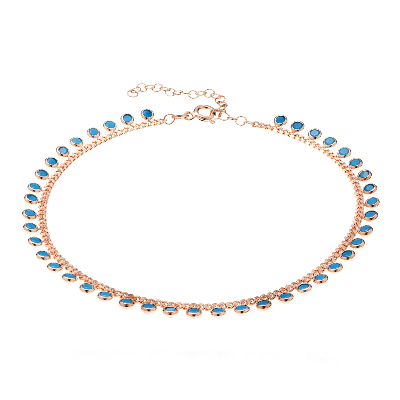Srebrna bransoletka na nogę z turkusem - różowe złoto