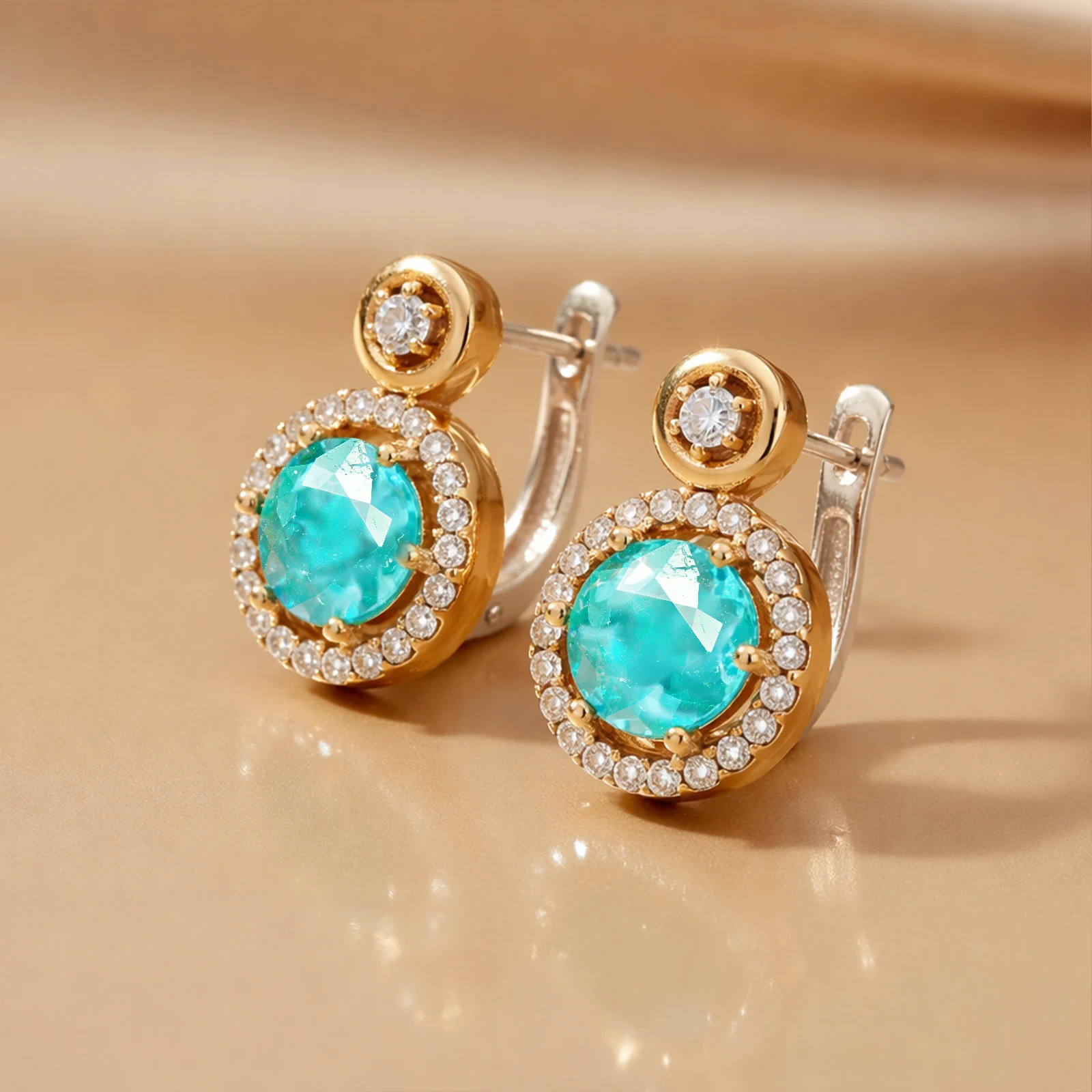 Srebrne kolczyki z zielonym turmalinem paraiba i cyrkoniami