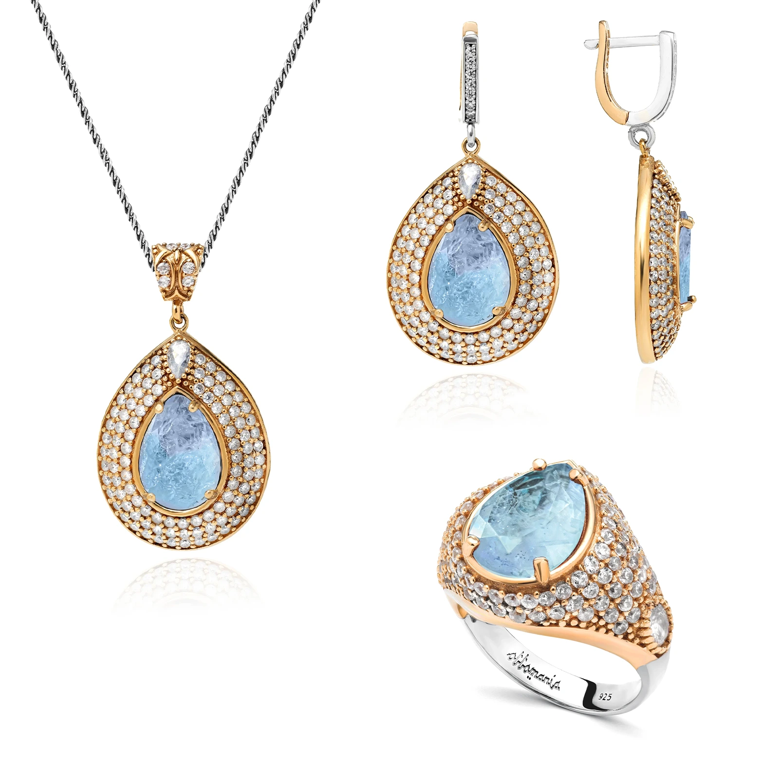 Srebrny komplet z niebieskim turmalinem paraiba w stylu ottomańskim