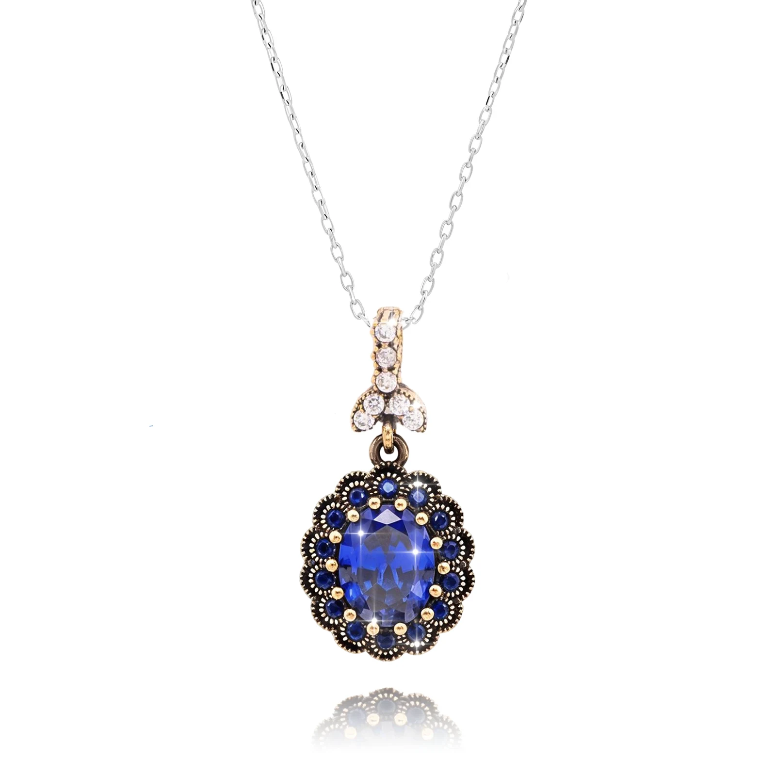Srebrny naszyjnik z szafirami zdobiony brązem (1 szt.)