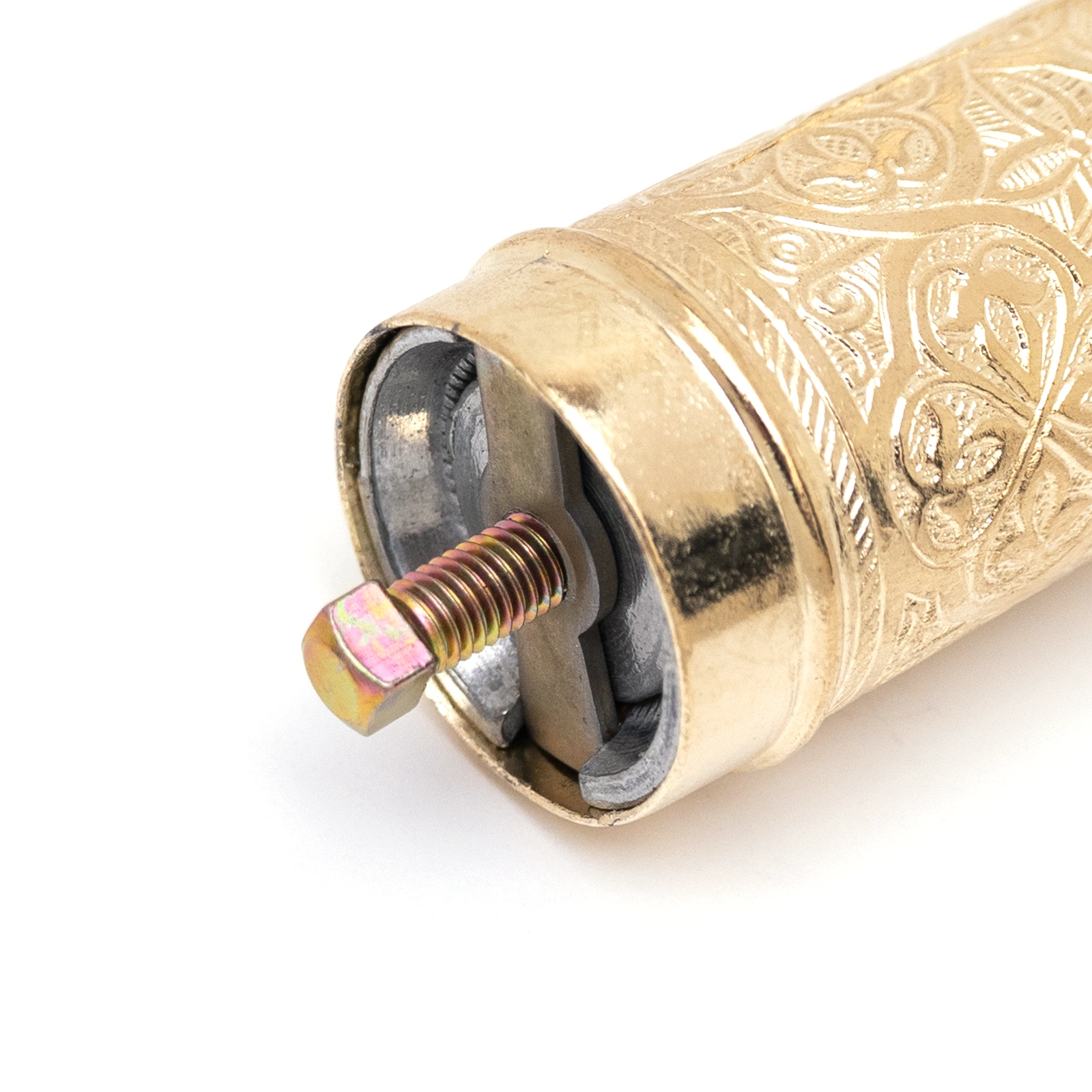 Młynek do kawy w kolorze złotym to propozycja dla osób, które chcą otaczać się orientem i czuć codziennie ten niesamowity egzotyczny klimat. Już nawet widok orientalnego młynka w jednej chwili przeniesie Cię do świata orientu i otuli ciepłem słońca. Dzięki temu wyjątkowemu młynkowi Twoja kuchnia nabierze orientalnego charakteru - nie tylko w postaci potraw, ale i akcesoriów! Prezentowany młynek może służyć również nie tylko jako młynek do przypraw w kuchni, ale również jako dekoracja. Będzie też idealnym prezentem dla osoby pasjonującej się orientem. Nie czekaj więc dłużej - nadaj życiu orientalnego charakteru, dzięki rozmaitościom z Ottomanii!