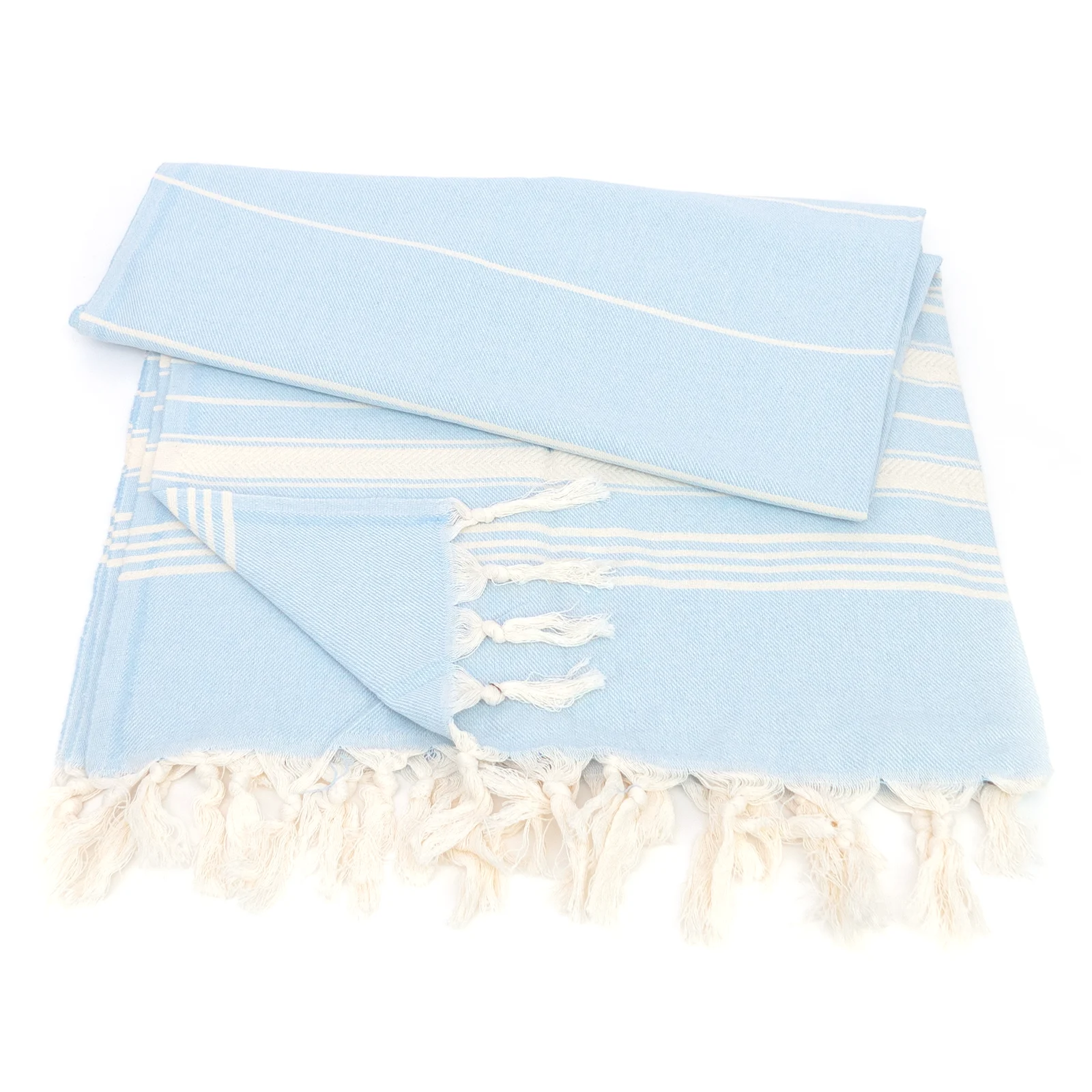 Turecki ręcznik peshtemal z 100% bawełny, jasnoniebieski z frędzlami