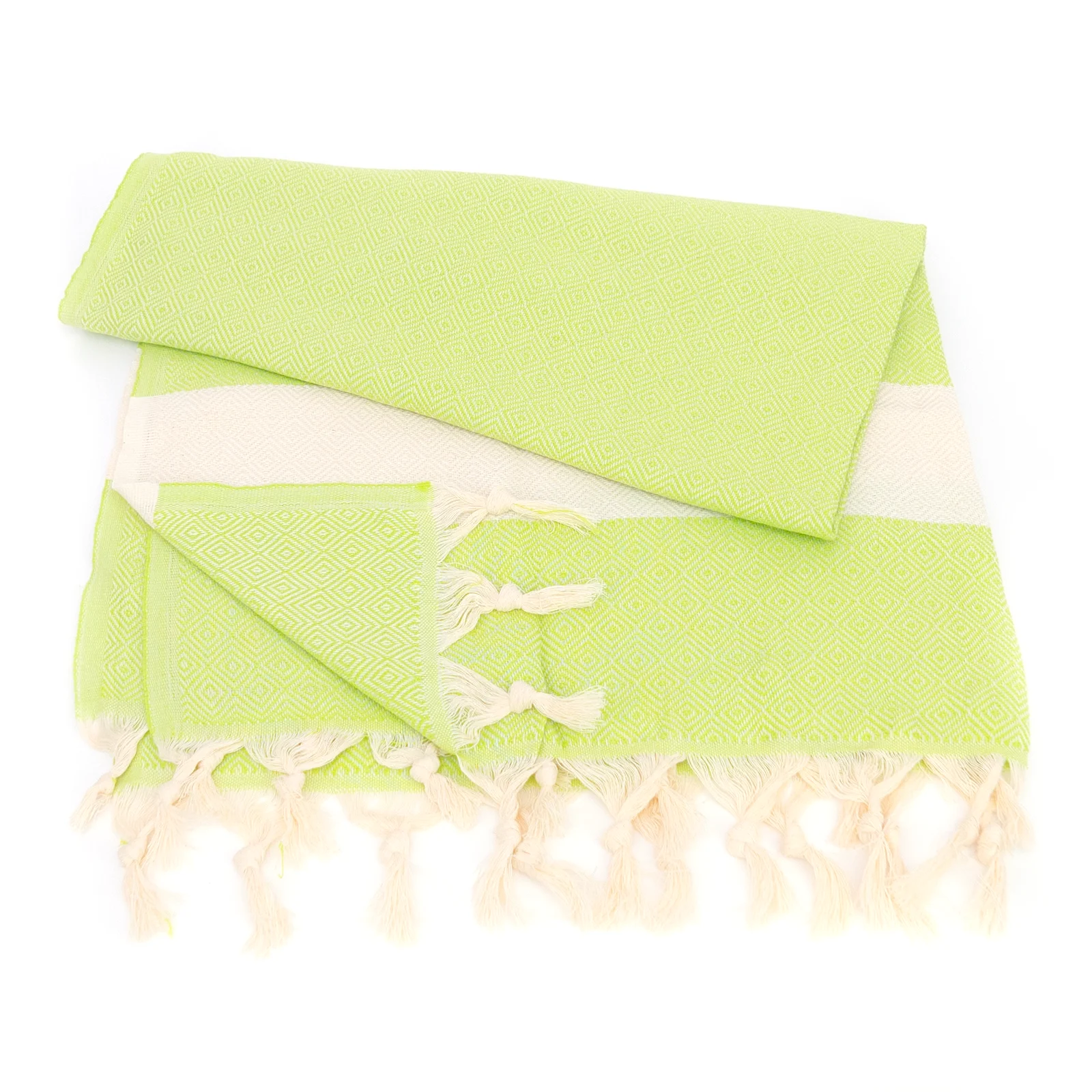 Turecki ręcznik peshtemal z bawełny 100%, zielony z frędzlami