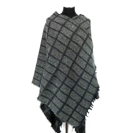 Ponczo z nacięciem i wzorem w kratkę to stylowy dodatek, który wyróżnia się klasycznym, a jednocześnie wyrazistym charakterem. Wykonane z miękkiego materiału, zapewnia wygodę i wszechstronność noszenia - można je owinąć, zawiązać lub swobodnie zarzucić na ramiona. Kraciasty wzór w połączeniu z szarym kolorem, tworzy harmonijną całość, która świetnie sprawdzi się zarówno na co dzień, jak i na specjalne okazje.