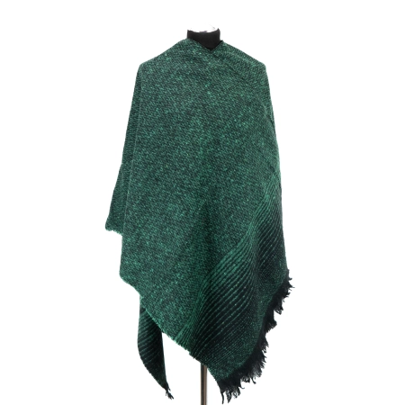 Ponczo z nacięciem to stylowy dodatek, który wyróżnia się klasycznym, a jednocześnie wyrazistym charakterem. Wykonane z miękkiego materiału, zapewnia wygodę i wszechstronność noszenia - można je owinąć, zawiązać lub swobodnie zarzucić na ramiona. Pasiasty wzór w połączeniu z zielonym kolorem, tworzy harmonijną całość, która świetnie sprawdzi się zarówno na co dzień, jak i na specjalne okazje.