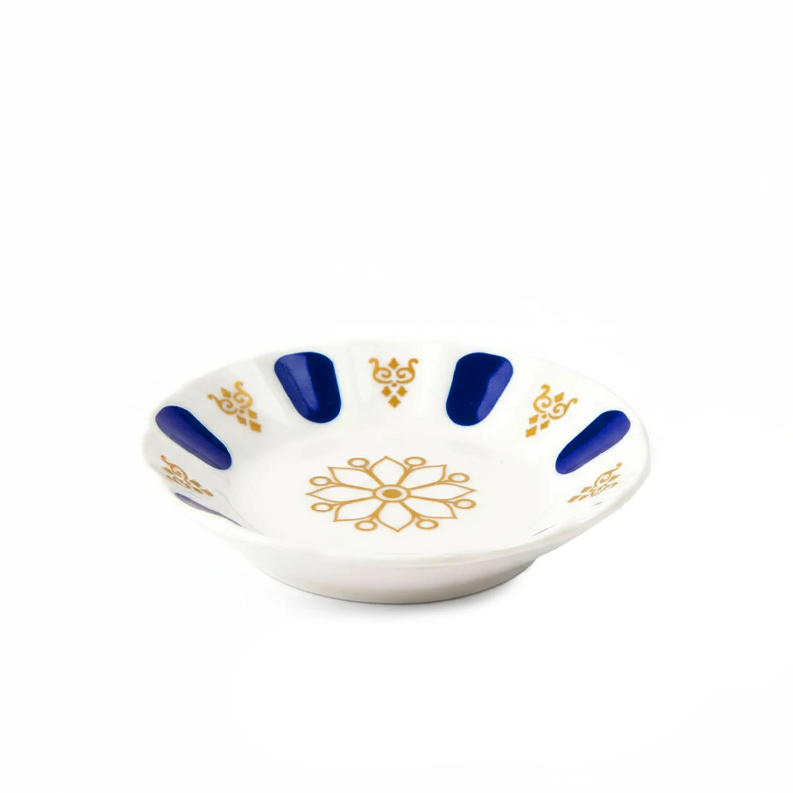 Zestaw 6szt porcelanowych podstawek pod filiżanki 11 cm - biało-granatowe ze złotym wzorem